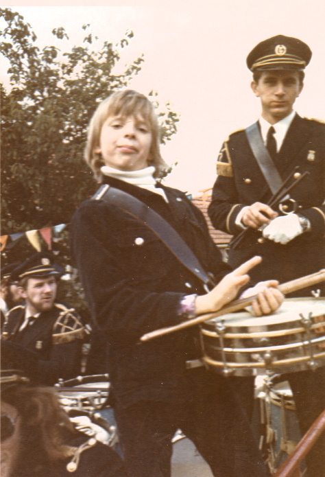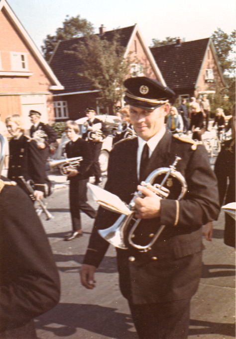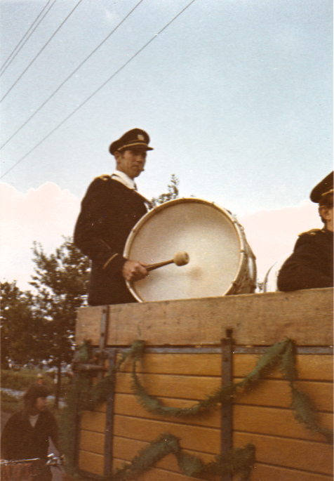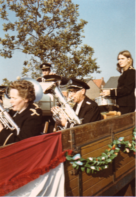 Euphonia bij de optocht van het dorpsfeest rond 1975