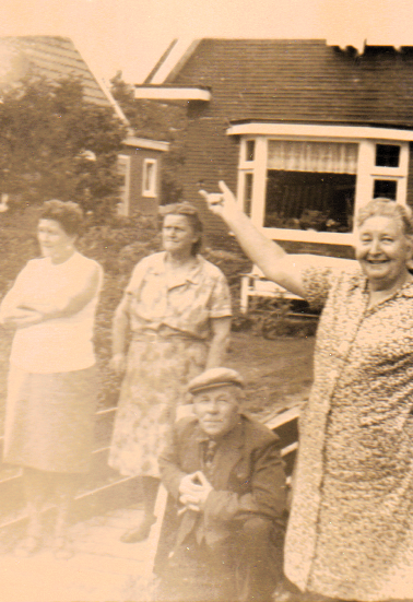 Vrouw Fokkema, echtpaar Gooitzen Stoker en Jo Stoker-Rispens en mevrouw van der Schaaf bij Merkebuorren 99